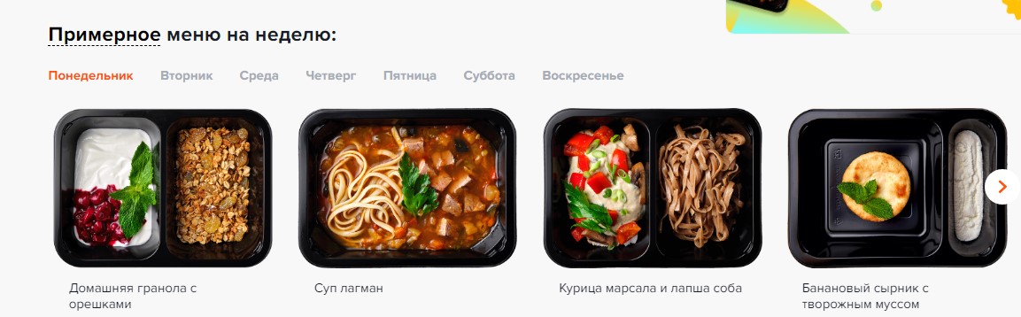 Достичь стройной фигуры легко: зайдите в каталог и закажите недельный или месячный набор продуктов. Курьеры Level Kitchen доставят еду в интервале времени с 6 утра до 12 дня. К каждому набору прилагается распечатанное меню с указанием калорийности и ценности, что облегчает контроль за питанием. Она занимает первое место в списке лучших служб доставки на дом в 2022 году. Сначала вы выбираете тип рациона.